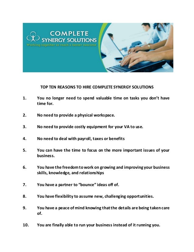 Top Ten Reasons To Hire Complete Synergy Solutions